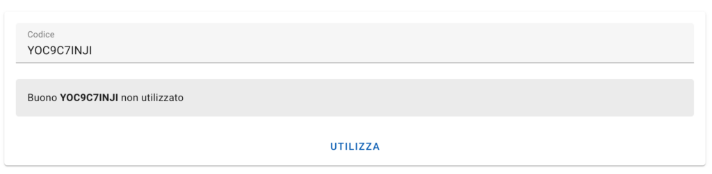 Digitando il codice del ticket formativo o facendo una scansione tramite un lettore di codice a barre il sistema verificherà se il il buono formativo è stato già utilizzato. Premendo il pulsante “UTILIZZA” il buono verrà associato alla propria utenza.