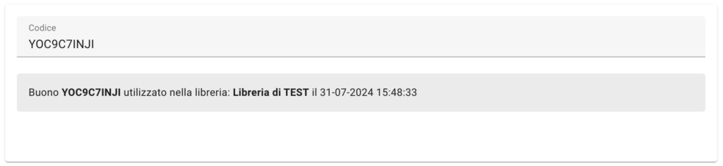 Se il codice è già stato utilizzato, il sistema mostrerà la data e a quale libreria è stato associato.